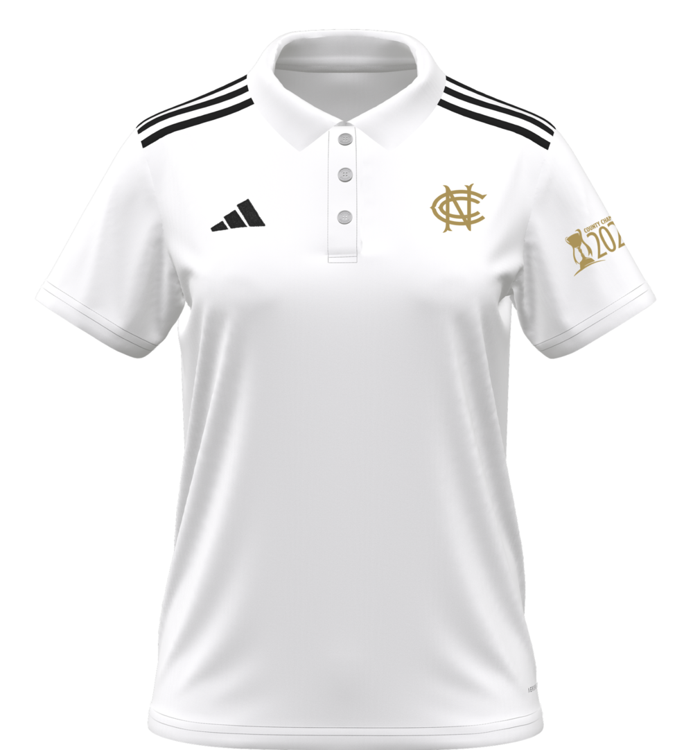 Special edition adidas polo shirt commemorating Nottinghamshire County Cricket Club winning the 2025 County Championship.  Gold NCCC monogram printed on the chest and 7 gold stars printed along the upper back and gold County Champions 2025 trophy feature on the left sleeve. Material: 100% recycled polyester  More Stock arriving soon